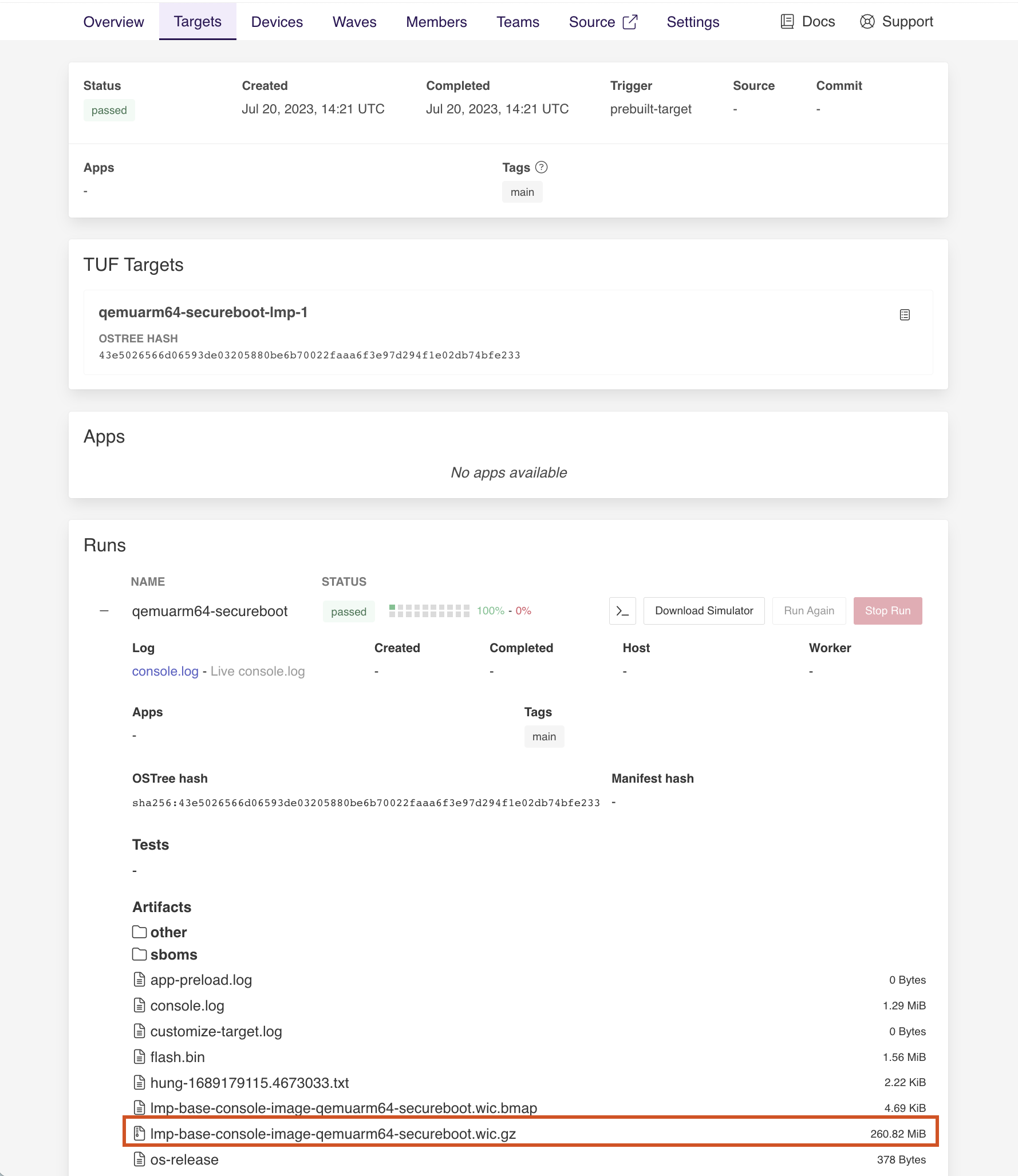 prebuilt-targeton it. This shows a link to the Factory image artifact. Download the Factory image for your machine:E.g:lmp-base-console-image-<machine_name>.wic.gz