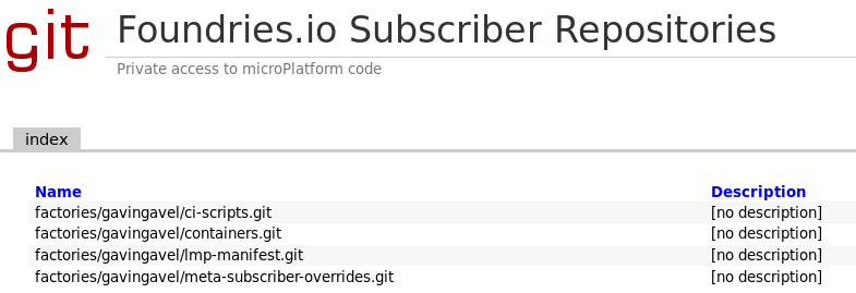 The FoundriesFactory™ Platform provides you with a private git sandbox, allowing you to maintain and customize your platform.