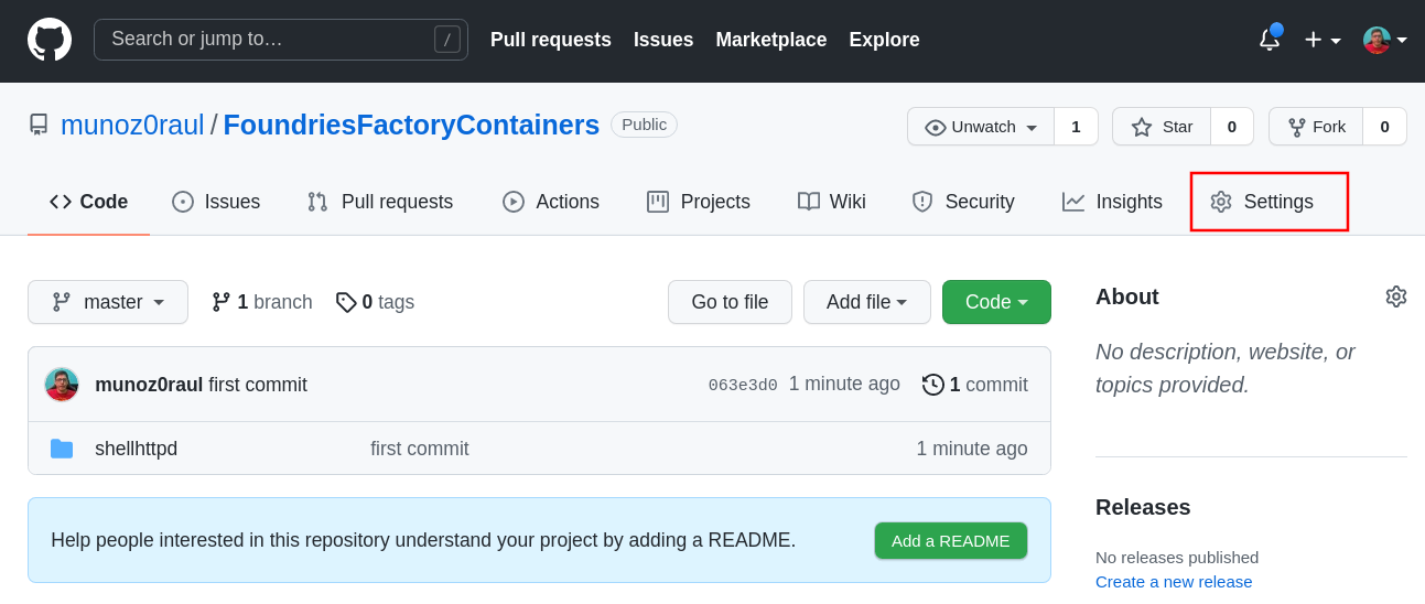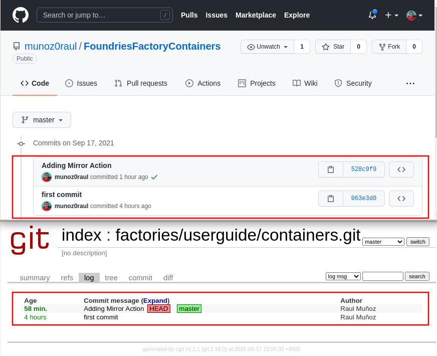 Your FoundriesFactory and GitHub hosted repos should look the same.